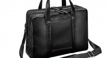 La cartera va bien con el bolso de negocios negro, también de cuero perforado y resaltado con una costura superior roja en contraste. Su práctica disposición proporciona espacio para un ordenador portátil de hasta 38. cm (15 pulgadas) y un gran compartimento con un cierre magnético.