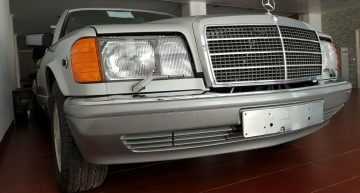 La Clase S de 1986 no parece haber sido sacada del sol durante el día, y es tan nueva que tiene todas las señales de advertencia en ella, por lo que estas deben ser removidas primero.