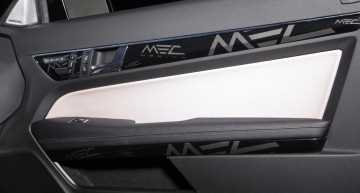 En cuanto al interior, los clientes obtendrán un volante forrado en Alcántara, complementado con adornos en negro piano y, por supuesto, alfombras de marca MEC.