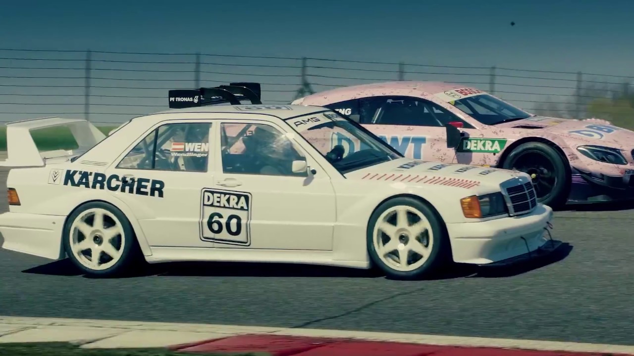 El menor de la familia de las carreras, el Mercedes C63 AMG DTM, conoce a su ancestro, el Mercedes-Benz 190E EVO II DTM de 1990. El abuelo se detuvo después de haber conseguido 84 victorias en 156 carreras, condimentado con diez campeonatos de pilotos y envuelto en 13 títulos de constructores. Ahora se enfrenta al C63 AMG DTM, basado en el Mercedes-AMG Clase C Coupé. La aceleración, la frenada y el manejo son las pruebas que tienen que pasar.