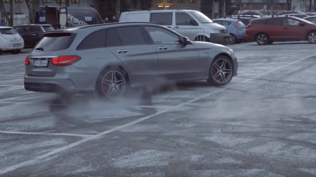 Cruzando Córcega en el «Tour de la emoción» de AMGEl coche está impulsado por el famoso V8 que desarrolla 510 caballos de fuerza y pasa de estar parado a 100 km/h en sólo 3,9 segundos. En cuanto a Petter Solberg, está impulsado por las 460 etapas que ganó como piloto profesional de rally. Solberg advierte a los conductores: Por favor, no intenten esto en casa!