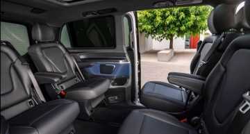 El Mercedes-Benz EQV está disponible con diferentes distribuciones interiores, todas ellas adornadas con acentos cálidos como el oro rosa que complementa el aspecto de cuero azul de medianoche. Por ejemplo, se pueden transportar seis pasajeros en asientos individuales, pero también hay un formato con asientos traseros disponibles, lo que significa que el coche también puede transportar 7 u 8 personas. El maletero puede acomodar 1.030 litros de equipaje.