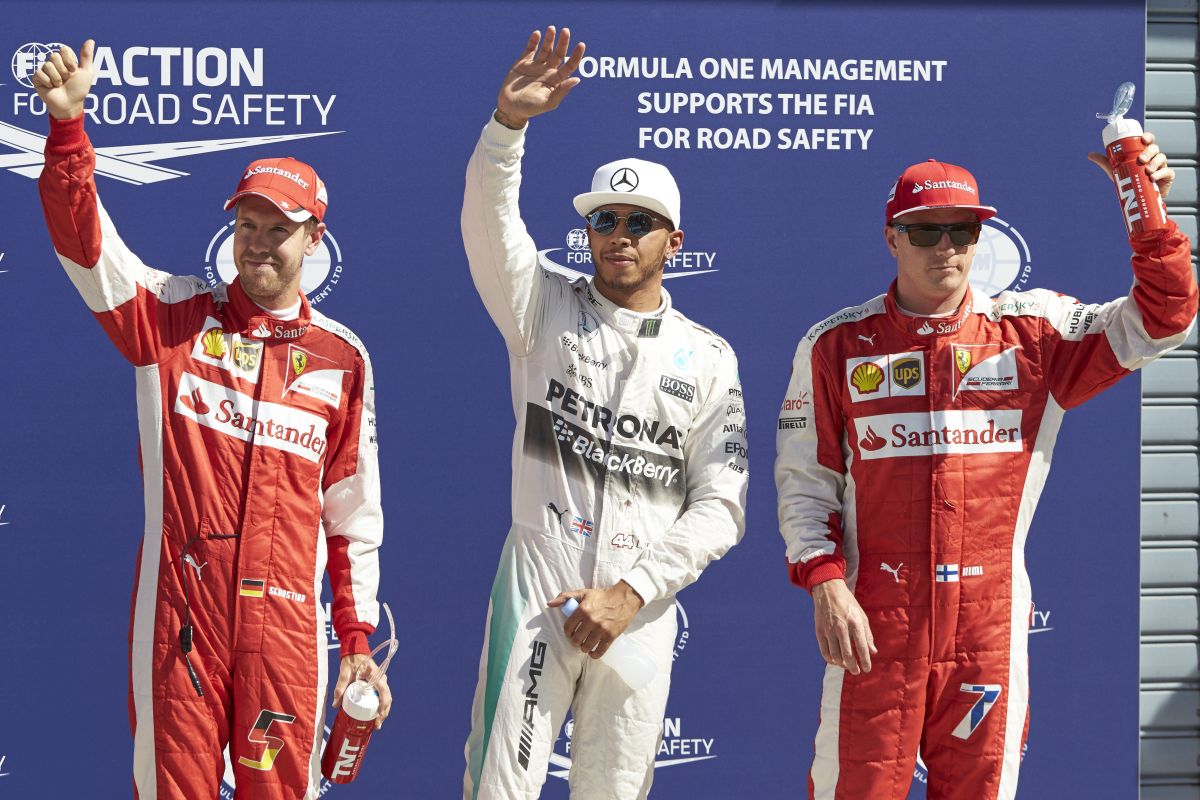 PosDriverCarGap1Lewis HamiltonMercedes1m23.397s2Kimi RaikkonenFerrari0.234s3Sebastian VettelFerrari0.288s4Nico RosbergMercedes0.306s5Felipe MassaWilliams/Mercedes0.543s6Valtteri BottasWilliams/Mercedes0.730s7Sergio PerezForce India/Mercedes1.229s8Romain GrosjeanLotus/Mercedes1.657s9Nico HulkenbergForce India/Mercedes1.920s10Marcus EricssonSauber/Ferrari2.817s11Pastor MaldonadoLotus/Mercedes1.128s12Felipe NasrSauber/Ferrari1.501s13Will StevensMarussia/Ferrari4.334s14Roberto MerhiMarussia/Ferrari4.515s15Carlos SainzToro Rosso/Renault2.221s16Daniil KvyatRed Bull/Renault2.399s17Jenson ButtonMcLaren/Honda2.661s18Fernando AlonsoMcLaren/Honda2.757s19Max VerstappenToro Rosso/Renault-20Daniel RicciardoRed Bull/Renault-