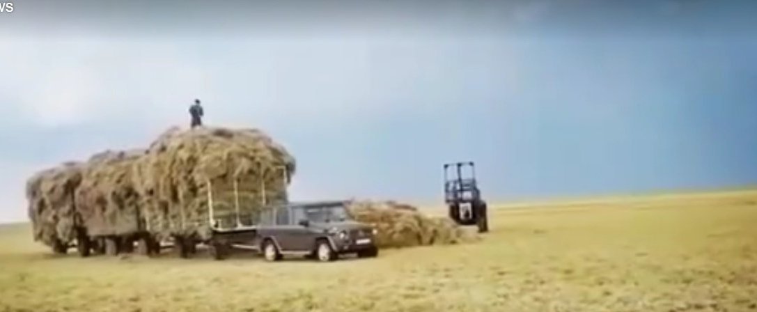 ¡Tienes que verlo para creerlo! E incluso entonces podrías sospechar de algunos efectos especiales. Un valiente conductor remolca tres remolques llenos de heno a través de un campo. Ok, hasta ahora, todo bien. Pero el tractor que arrastra toda la carga pesada es el Mercedes-Benz Clase G!