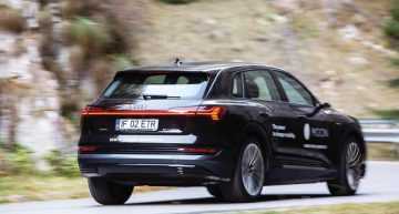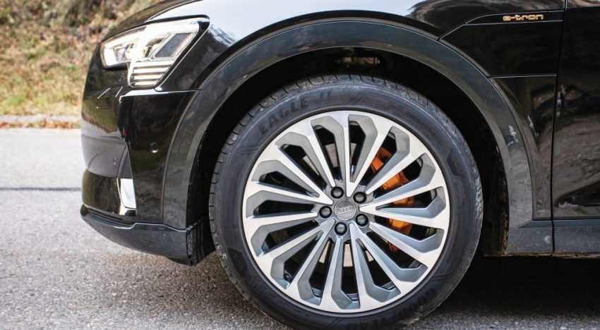 El Audi e-tron también se comporta de forma notable, teniendo en cuenta su gran peso, de 2.665 kg. Soporta una aceleración lateral aún mayor que el I-Pace, de 0,97 g, en comparación con los 0,94 g y es muy neutro en el límite. Cuando se está en el límite, se siente una inercia muy alta, pero el muy buen agarre y la intervención progresiva del ESP asegura el mantenimiento en la ruta ideal.