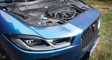 El Jaguar tiene el mismo problema, cargando lentamente a corriente alterna con sólo 7,6 kWh. En cambio, se pueden cargar hasta 100 kWh con corriente continua.